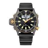 The JP2008-06E marks the 40th Anniversary of CITIZEN’s legendary Aqualand, the world’s first diver’s watch with a built-in electronic depth meter introduced in 1985. This limited edition timepiece echoes the bold design of the original with its distinctive case shape, side-mounted depth sensor, and gold-accented details, while integrating modern functionality for divers. Powered by Caliber C520, it offers depth measurement, dive time tracking, and an ascent rate warning to support safer diving, along with alarm, calendar, and chronograph functions. Water resistant to 200 meters and ISO-certified for professional diving, it features a durable stainless steel case, unidirectional rotating bezel, and an eco-friendly BENEBiOL™ strap with extension for wetsuits. Limited to 5,800 pieces worldwide, this model blends heritage, innovation, and purpose-built performance.