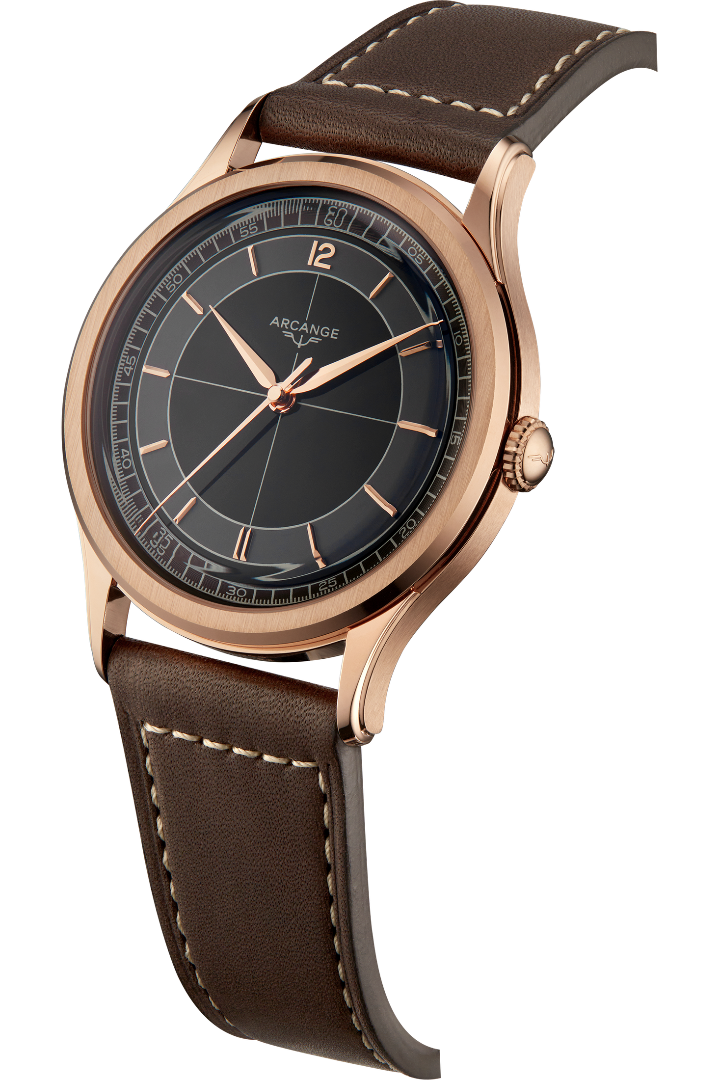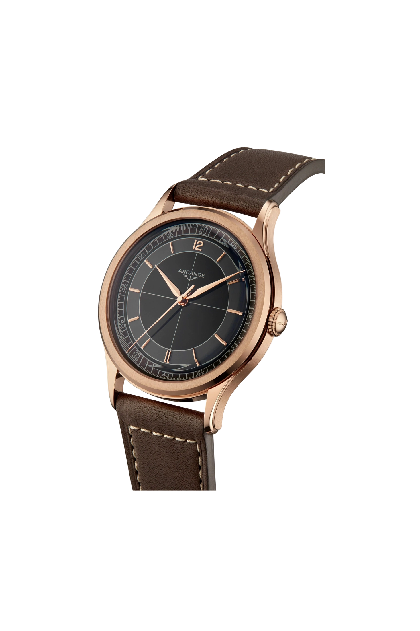 The AS05-B along with the AS05-G is the most refined and elegant variation of the collection, featuring a 4N rose gold PVD case (double-layer plating), a bi-tone lacquered black and matte anthracite dial, and hand-applied 4N rose gold faceted alpha hands and hour markers. It also features double-layer printing and circular guilloché on the minute track.The domed sapphire crystal enhances the whole.