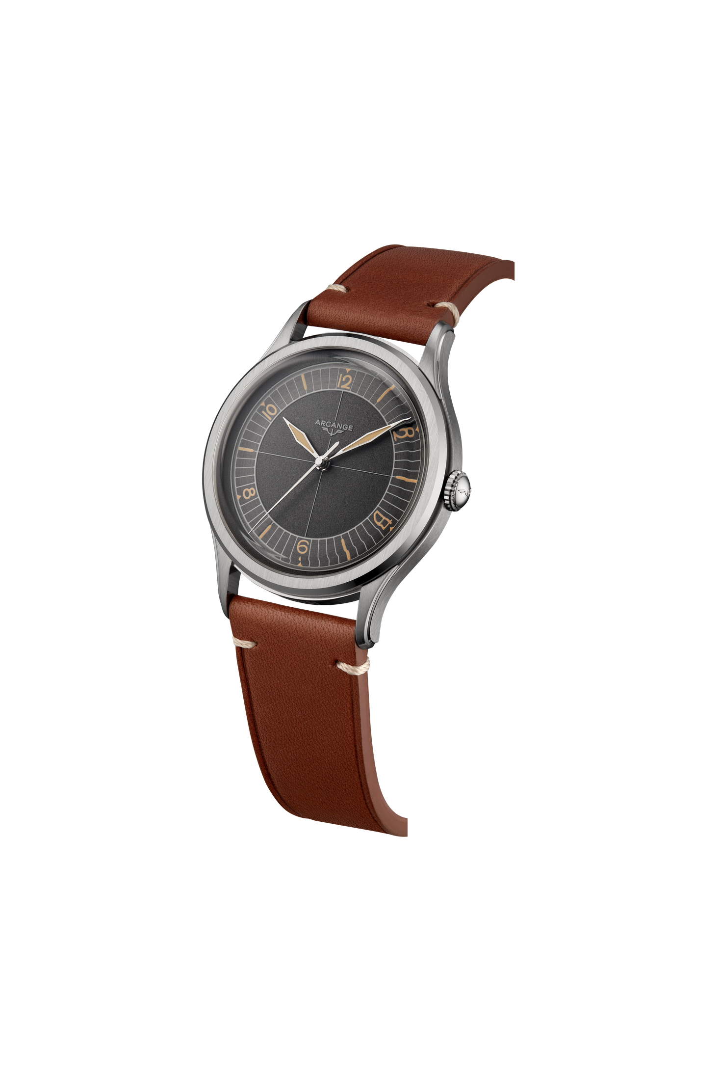 The AS03 Field follows the traditional codes of sector dial watches, featuring a finely granulated and circular-brushed anthracite dial, contrasted by lozenge hands coated with Superluminova C3X1 in an "old radium" shade. The domed sapphire crystal enhances the overall design.