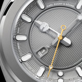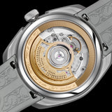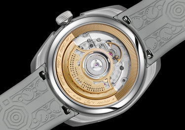Movement automatic, 42 hours power reserve, 28,800 vph, 21 jewels, CSS201 (modified Dubois Dépraz DD90010) Decorated, gold-plated movement ring protected behind glass Frequency: 4 Hz – 28’800 A/h 42 hours of power reserve 21 rubies