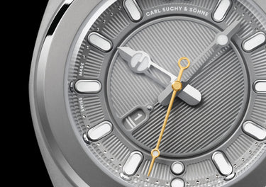 Titanium is very light, scratch-resistant and corrosion-resistant. Ideal for the sporting demands of an active life, yet supple and elegant with a matt sheen. The Belvedere Titan is a clear statement of the highest art of watchmaking, a characteristic shared by all Carl Suchy & Söhne timepieces.