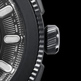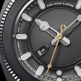 The Belvedere Midnight impresses with its deep black colour scheme, the impressive shine of the resistant DLC coating and the striking fluted bezel. This all-black model gives the Belvedere an impressive radiance, an aura of sporty elegance and robustness.
