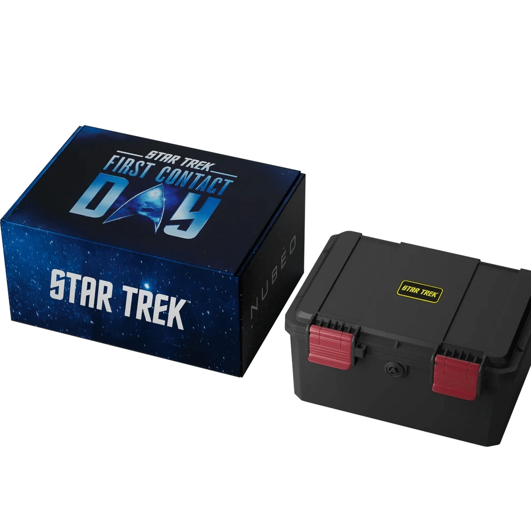 A tribute to one of the most pivotal moments in Star Trek history. On April 5, 2063, humanity made its first successful contact with extraterrestrial life. The dial showcases a stunning 3D-moulded masterpiece of the Vulcan spacecraft T'Plana-Hath. Each element of the intricately detailed dial is crafted with precision, reflecting the balance of science and imagination that defines Star Trek.