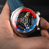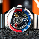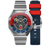 A new iteration from our Skylab collection. Keeping the same elegantly crafted hexagonal pattern on the dial, it also features a Japanese automatic movement and two hands for an accurate and reliable timekeeping experience. It also comes with an additional rubber strap for extra versatility.