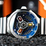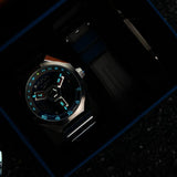 A new iteration from our Skylab collection. Keeping the same elegantly crafted hexagonal pattern on the dial, it also features a Japanese automatic movement and two hands for an accurate and reliable timekeeping experience. It also comes with an additional rubber strap for extra versatility.