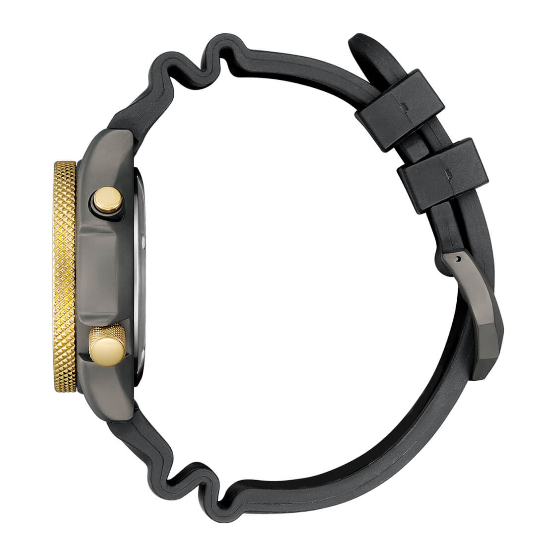 The JP2008-06E marks the 40th Anniversary of CITIZEN’s legendary Aqualand, the world’s first diver’s watch with a built-in electronic depth meter introduced in 1985. This limited edition timepiece echoes the bold design of the original with its distinctive case shape, side-mounted depth sensor, and gold-accented details, while integrating modern functionality for divers. Powered by Caliber C520, it offers depth measurement, dive time tracking, and an ascent rate warning to support safer diving, along with alarm, calendar, and chronograph functions. Water resistant to 200 meters and ISO-certified for professional diving, it features a durable stainless steel case, unidirectional rotating bezel, and an eco-friendly BENEBiOL™ strap with extension for wetsuits. Limited to 5,800 pieces worldwide, this model blends heritage, innovation, and purpose-built performance.