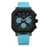 The Sportalia Azure Chronograph combines bold design with striking details. Featuring a matte black 316 stainless steel case and a distinctive baby blue-on-black dial, this timepiece brings a fresh, modern look to classic chronograph functionality.