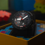 Continuing the bold evolution of gaming-inspired series, this limited edition of the Cassini family takes a darker turn with an all-black design complemented by vibrant, colorful accents on the indices and hands. The result? A stealthy, futuristic look that nods to the endless battles of intergalactic gameplay.