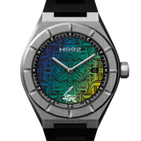 For this special edition, H992 has partnered with Astro, a world-renowned Parisian street artist, to create a unique watch. Having started in graffiti in 2000, Astro evolved into abstract art, blending curves, calligraphy, and geometric shapes, inspired by urban architecture. His works, famous for their optical illusions and interaction with space, adorn the walls of cities around the world.