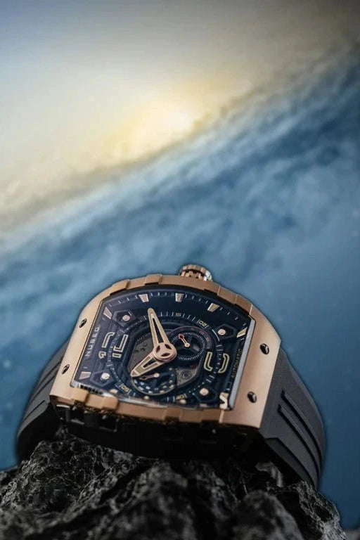 A new addition to Nubeo's beloved collection, Magellan 24 Hour Automatic features a signature tonneau-shaped case with interconnected parts, and a Japanese automatic movement with a 24-hour feature. This timepiece boasts both style and functionality. Available in bold and vibrant colors, it's a stunning and captivating addition to your watch collection.