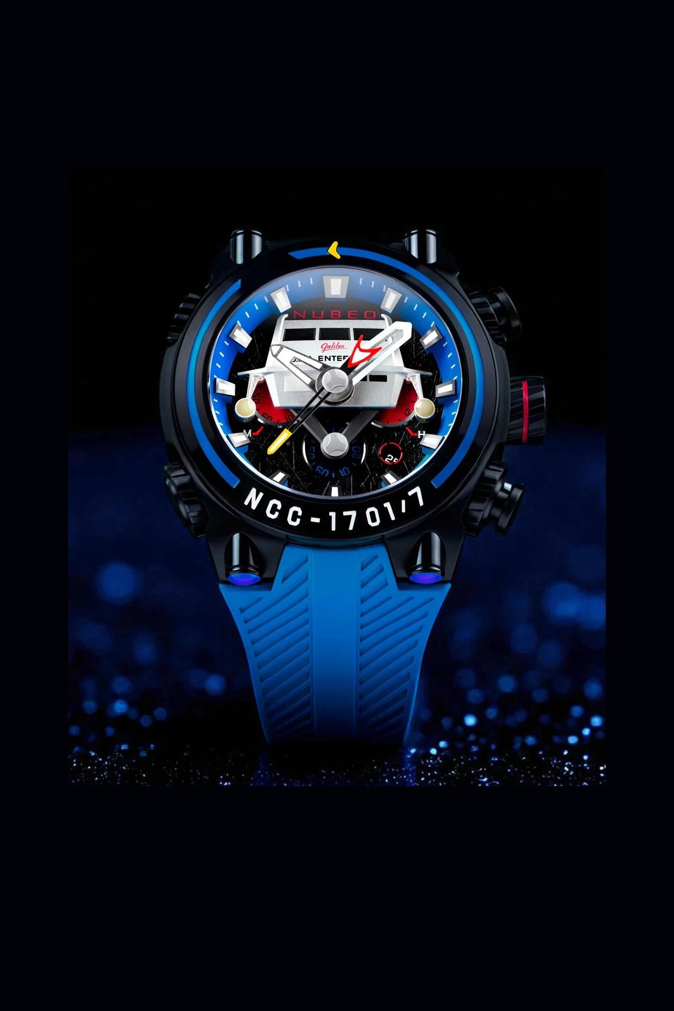 Paying homage to the iconic NCC-1701/7 Galileo shuttlecraft from Star Trek: The Original Series, each watch features a striking 3D rendering of the legendary shuttle on the dial—beautifully set against bold, timeless colorways.