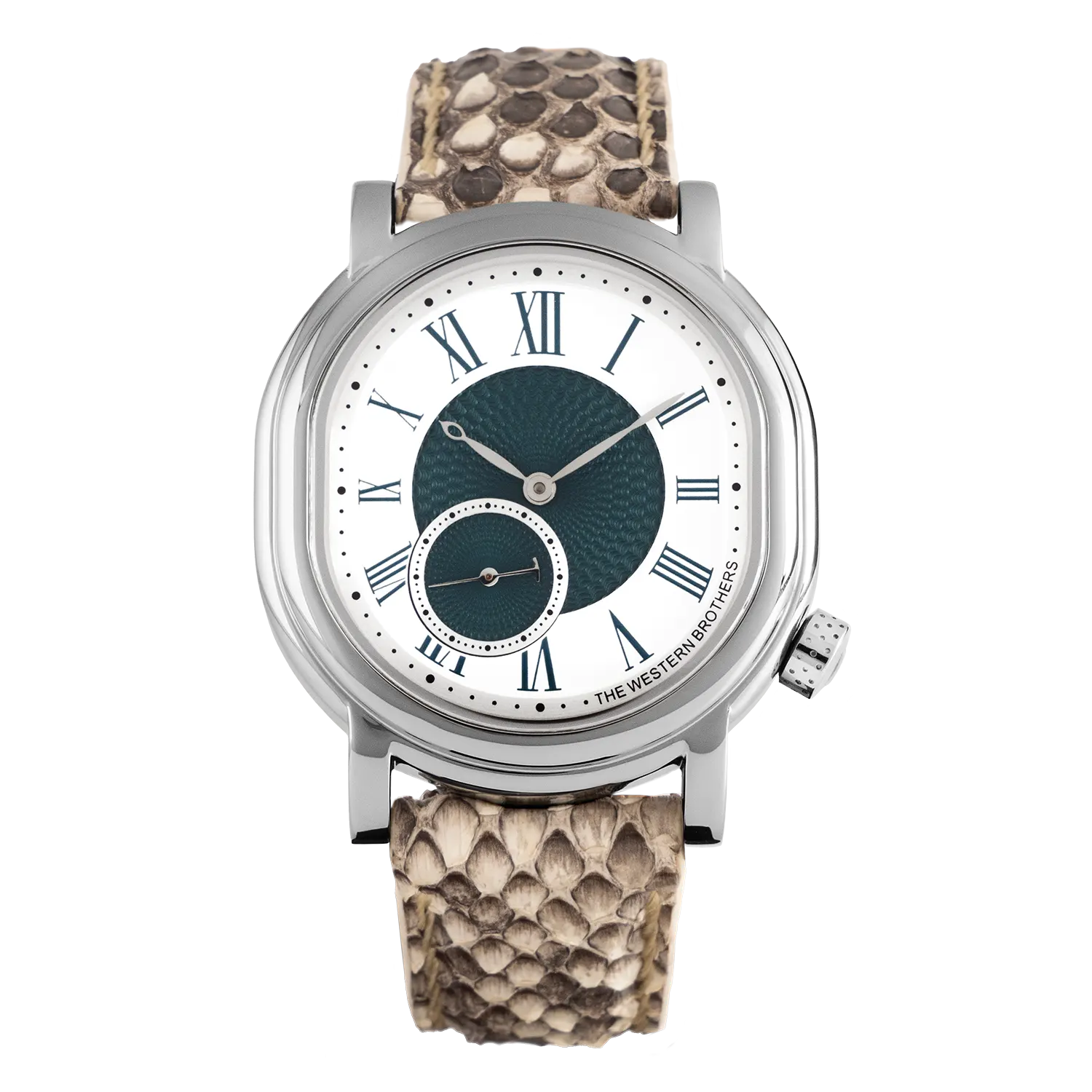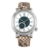 Paired with a distinctive python-textured leather strap, the Cavalieria Turquoise offers a statement-making blend of luxury and individuality — perfect for those who appreciate refined craftsmanship with a daring edge.