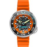 A new iteration of the best-selling Ventana collection. The multilayered dial features a semi-transparent plate, giving wearers a glimpse of the Japanese automatic movement beneath. Featuring an impressive 100 ATM water resistance and encased in a sapphire lens for maximum durability, this design pays homage to the submersibles innovation while delivering a sophisticated style.