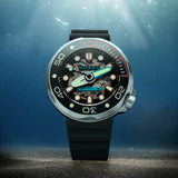 A new iteration of the best-selling Ventana collection. The multilayered dial features a semi-transparent plate, giving wearers a glimpse of the Japanese automatic movement beneath. Featuring an impressive 100 ATM water resistance and encased in a sapphire lens for maximum durability, this design pays homage to the submersibles innovation while delivering a sophisticated style.