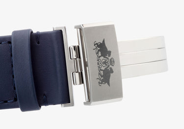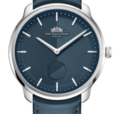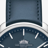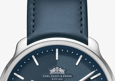 Blue like the Viennese Danube – the Waltz N°1 Blue Danube is the unique blue steel watch by Carl Suchy & Söhne. The mechanic watch with a longstanding Austrian legacy is handcrafted in Switzerland in strictly limited production series. The high-quality dress watch is characterized by clear lines and minimalist design, inspired by Viennese Modernism.